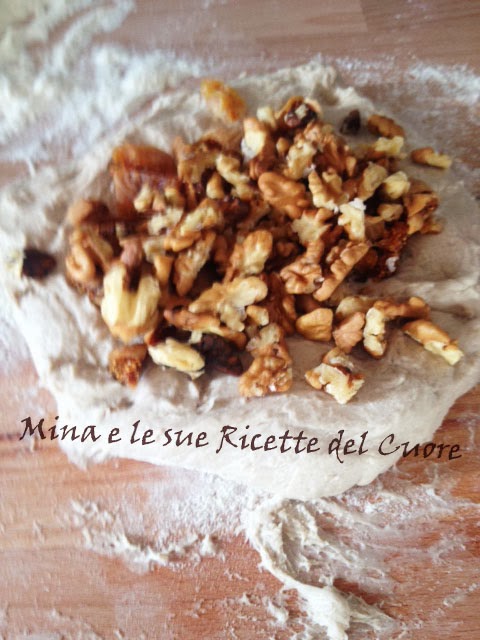spolverata di farina, aggiungere i fichi tagliati a pezzi e le noci